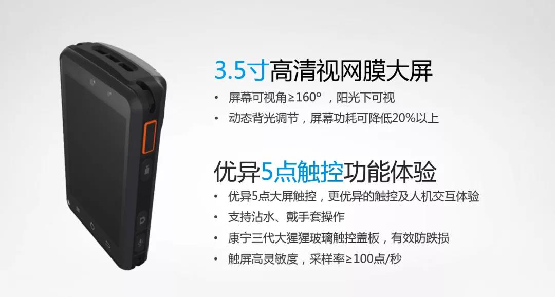 安徽创世科技股份有限公司融合多项技术,基于移动执法理念,为公安行业专业定制了智眸系列4G执法记录仪, 利用科技信息化、智能化、移动化技术方案提升警务能力。采用三防IP68设计、Android 8.1操作系统、MTK四核*速处理器、专用按键搭配及盲视操作设计,配合3.5寸高清视网膜屏,并支持双卡双待及VOLTE功能,可实现全警种的执法记录应用。